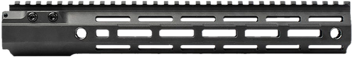 The Aero Precision Minimal Optical Deflection (MOD) 4 handguard seamlessly blends robust construction with an ergonomic form factor, ensuring no compromises between the two. Machined from 6061-T6 aluminum, the handguard is engineered with a focus on stiffness to drastically reduce deflection under load. It attaches to the upper receiver via a steel barrel nut, which also serves to significantly reduce point-of-impact shift when using an infrared laser aiming device under load.