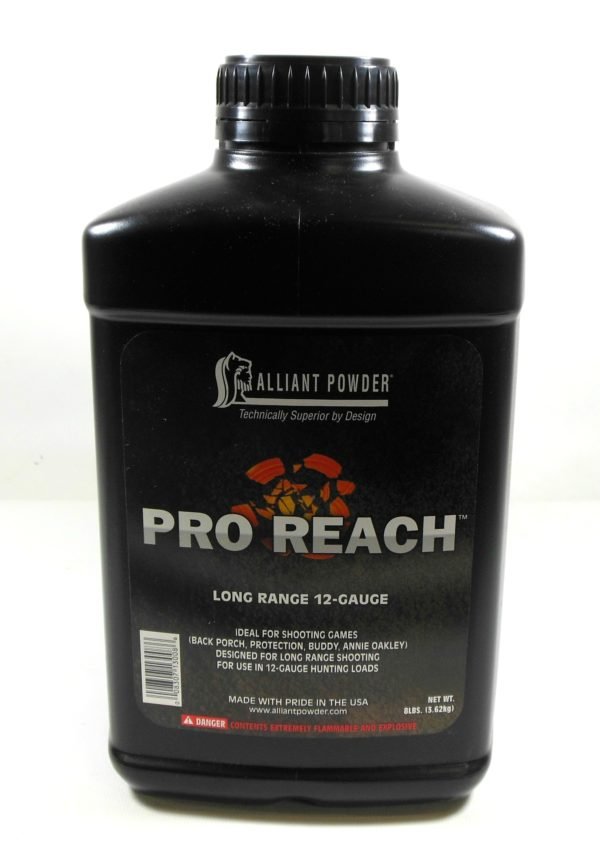 Buy Alliant Pro Reach When going long range turn to Pro Reach™ from Alliant Powder®. Formulated for long range 12 gauge clay target shooting, Pro Reach gives shooters the ability to reach out and dust clays at remarkable distances. Pro Reach is perfect for games such as Back Porch, Protection, Buddy and Annie Oakley and also a solid choice for reloading 12 gauge hunting loads. When you need to get out there and connect with a target, rely on Alliant Powder’s new Pro Reach.