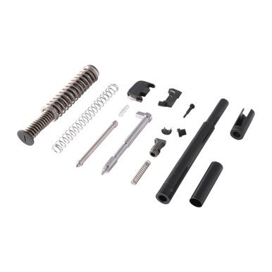 Contains all the parts you need to complete the innards of an aftermarket slide or refurbish a factory slide to like-new standards. All the parts in our Glock 19 Gen 5 Slide Parts Kit are aftermarket parts made to the correct dimensions for proper fit, finish, and function in a factory spec slide. The extractor is made from cast 17-4 SS. The firing pin is made from billet to improve the strength. The extractor depressor plunger and firing pin safety are machined from bar stock. Includes channel liner tool to properly install the channel liner.