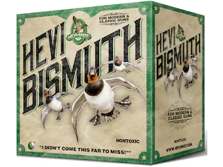 Buy Hevi-Shot Bismuth Ammunition 12 Gauge Non-Toxic Shot When you’re waking up at zero-dark-thirty and heading out in the chilly morning fog of opening day, you want to give yourself every opportunity for success. You want a shell that delivers maximum force at a price that doesn’t force you to take out a second mortgage. HEVI-Bismuth Waterfowl shells utilize bismuth, which is 22% denser than steel, to deliver more downrange lethality at an affordable price. And, it’s safe for older fixed choke and fine classic doubles shotguns.