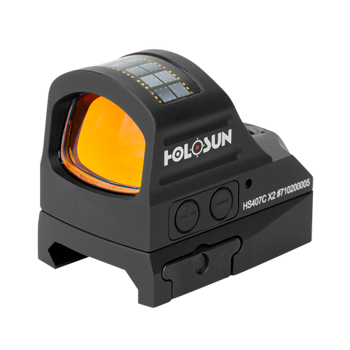 The HS407CO-X2 is an open reflex optical sight designed for pistol applications. Features include a 2MOA Open Circle, Holosuns Super LED with up to 50k hours battery life, Solar Failsafe, and Shake Awake.