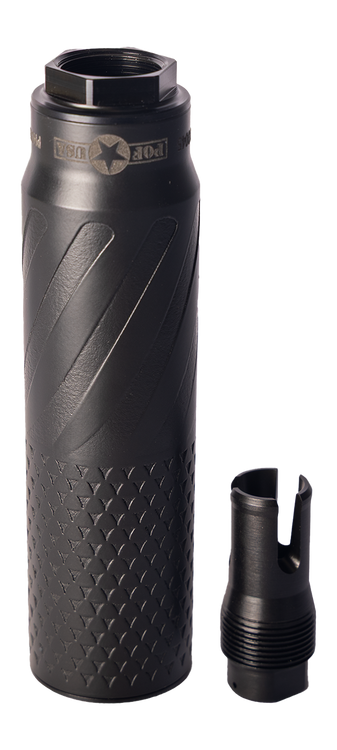 The PST-7 utilizes a three chamber, forward venting, monolithic design to reduce the mach pressure produced when firing the host weapon system. This design helps manage the cyclic rate of the host weapon system, while the forward exhaust ports help prevent gas blow back in the operators face. The PST-7 is protected by a high-temp Cerakote coating, features the PST HUB Adapter, and includes a 7.62 PST-QD Flash Hider.