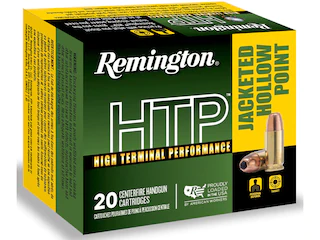 Remington HTP “High Terminal Performance” ammunition is designed with self-defense and hunting in mind. All HTP ammunition feature an appropriate expanding type bullet designed for the task at hand. Waterproof sealant is used on the primers and case mouths to ensure consistent performance from everyday carry or adverse conditions. This ammunition is new production, non-corrosive, in boxer primed, reloadable brass cases.