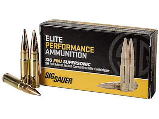 Buy Sig Sauer Elite Performance Ammunition 300 AAC Blackout 125 Grain Full Metal Jacket Box of 20 SIG SAUER supersonic rounds feature a 125gr Projectile for superior accuracy and minimal dispersion when suppressed. Consistent bullet weight retention with minimal velocity variations results from optimized shell case metallurgy with premium primers. Rounds are precision loaded using state-of-the-art, electromechanical monitoring for geometric conformity. This ammunition is new production, non-corrosive, in boxer-primed, reloadable brass cases.