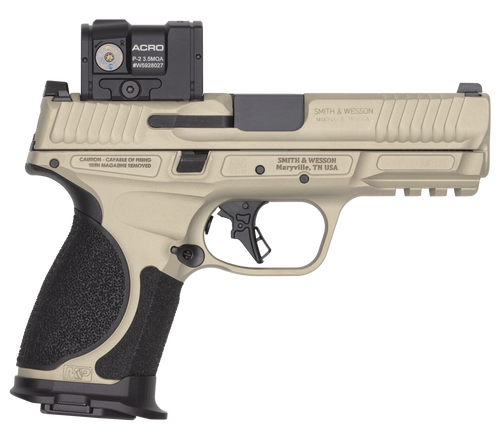 Includes Aimpoint ACRO P-2 red dot sight, three 15rd magazines, Savior Equipment pistol bag, four interchangeable palmswell grip inserts, Floyds Custom Shop EDC magwell & EDC baseplate, Hunter Constantine carry belt, S&W Spec Series VI knife, coin and patch.